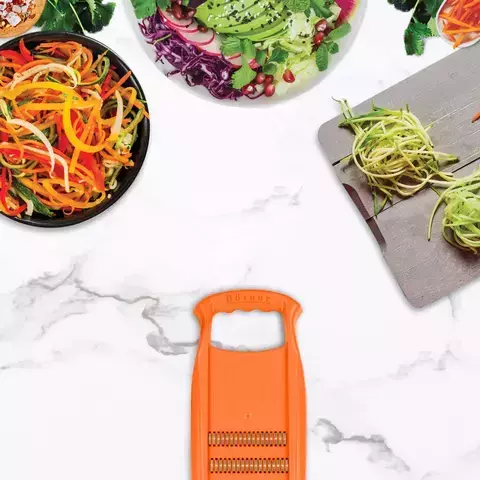 Ideal para cortar todo tipo de verduras como remolachas, papas, pepinos, zanahorias y más, en hilos largos o cortos, ya sea para ensaladas frescas o preparaciones cocidas. Perfecto para elaborar papas nido y también muy útil para trabajar con quesos y chocolates en decoraciones creativas.